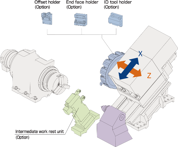 ●Enables heavy-duty cutting of large diameter workpieces with high-rigidity box slide for X axis.