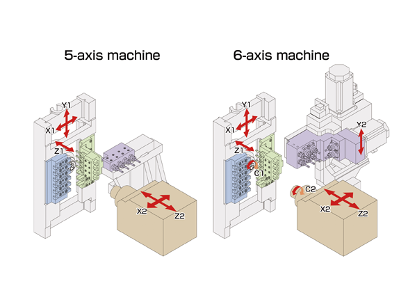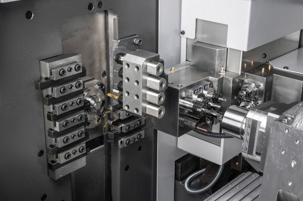 The combination of back spindle and back tool post enables the simultaneous operation of back side machining with main side machining.