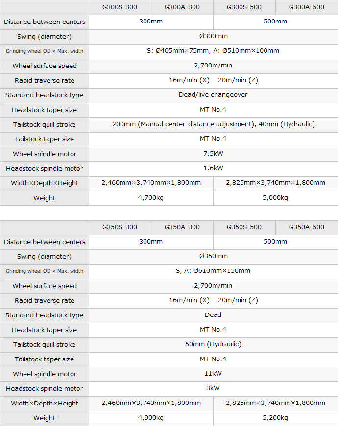 G300: Wheel dia. Ø510mm, Wheel spindle motor:7.5 kW(standard)