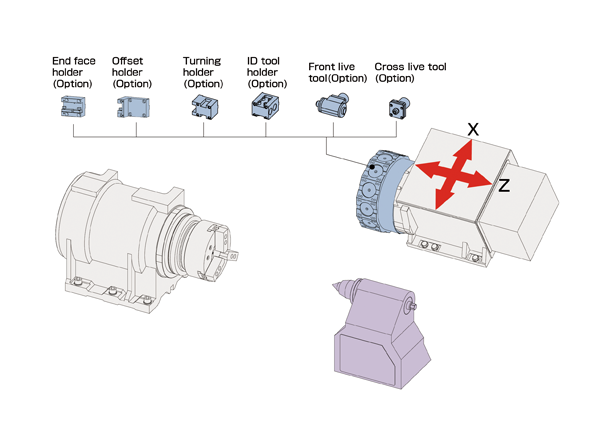 ●Powerful milling capability achieved by live tools with high-power and high-torque motor.