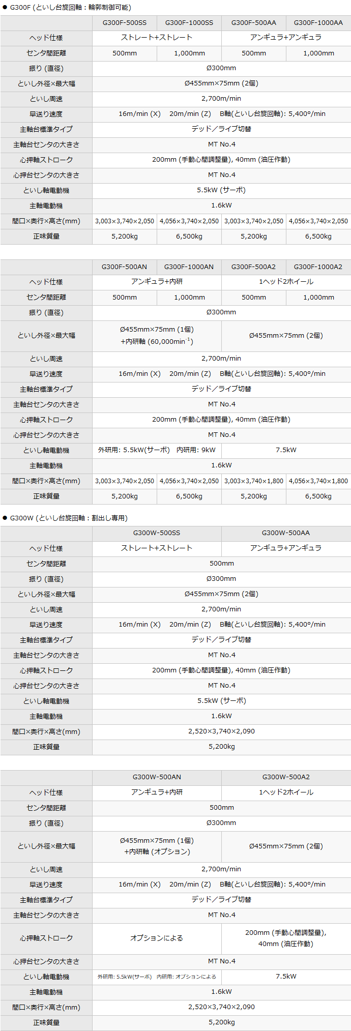 ●自動旋回といし台は豊富なバリエーションから選択可能